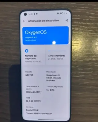 Precio no negociable. Teléfono móvil OnePlus 10 Pro 5G con 256 GB de almacenamiento y 12 GB de RAM. Se incluye una funda de regalo. - Modelo: NE2213 - Procesador: Snapdragon 8 Gen 1 Mobile Platform - Pantalla: 6,7 pulgadas - Batería: 5000 mAh - Cámara frontal: 32MP - Cámaras traseras: 48MP+50MP+8MP
