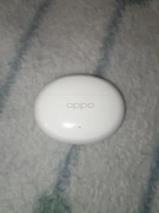 Auriculares inalámbricos de la marca Oppo. Diseño moderno y elegante. - Color blanco. - Estuche de carga compacto.