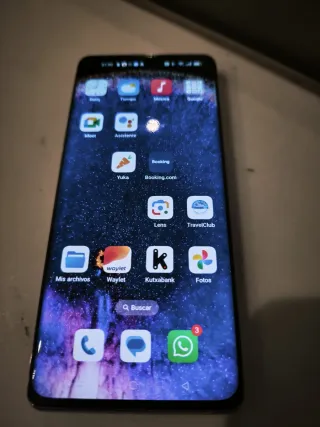 Teléfono móvil OPPO Find X5 con gran capacidad de almacenamiento. 256 GB de memoria interna. Tiene protector delantero y en la cámara trasera.La pantalla está impecable La carcasa trasera está resquebrajada pero el móvil funciona perfectamente