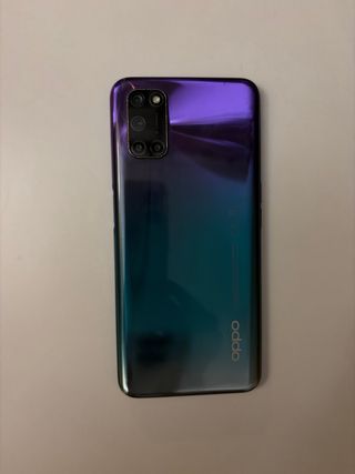 Teléfono Oppo A72 con acabado degradado en azul y morado. Con cabeza para cargar el móvil. Falta el cable. - Capacidad de almacenamiento de 128 GB - 4 GB. Muy poco uso. Está nuevo. Regalo funda. Entrego en Puerta del Sur. HAGO ENVÍOS POR WALLAPOP.