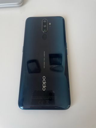 Oppo A9 2020 color azul/verde, 128GB de almacenamiento. Pantalla sin desperfectos ni rayones. Cristal trasero con algunas manchas que le quitan el brillo. Se dejó de usar antes de dar problemas por oferta de teléfono.