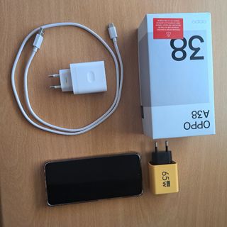 Vendo mi Oppo A38, en perfecto estado. Incluye (GRATIS) dos cargadores (uno de 28W y otro de 65W), una funda transparente y también un protector de pantalla. - Pantalla en excelentes condiciones. - Incluye caja original. - Dos cargadores (GRATIS) incluidos.