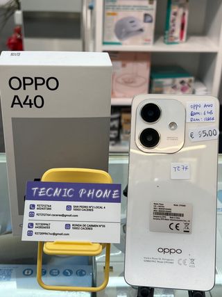 Teléfono móvil Oppo A40 en color blanco con 128GB de almacenamiento.