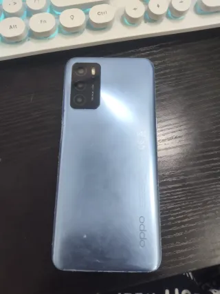 Teléfono móvil Oppo A16 en color azul con 4GB de RAM. - Diseño elegante y moderno. - Cámara triple en la parte trasera. - Logo de Oppo en la parte inferior trasera. .