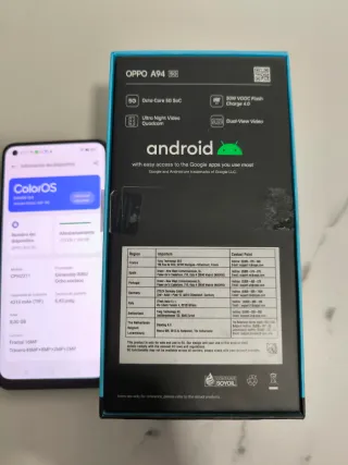 Teléfono móvil Oppo A94 5G con 128GB de almacenamiento. Perfecto estado y funcionamiento, pantalla siempre con protector. - Pantalla de 6.43 pulgadas. - Batería de 4310 mAh. - Cámara frontal de 16MP.