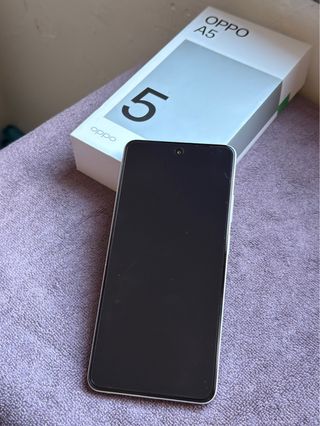 Teléfono móvil OPPO A5 Pro en color Verde manzana. Incluye funda protectora. Tengo la factura , comprado en junio 2025. - Funda protectora negra.