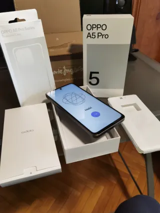 OPPO A5 Pro con 256GB de almacenamiento y 8Gb de RAM , nuevo. -Viene con funda oficial de OPPO de regalo -Comprado el día 23 de enero en el corte inglés -Esta nuevo no se ha usado , solamente abierto para sacarle las fotos - Modelo: A5 Pro - Capacidad: 256 GB y 8 GB de RAM Palabras gancho: #iphone #samsung #xiaomi #google #huawei