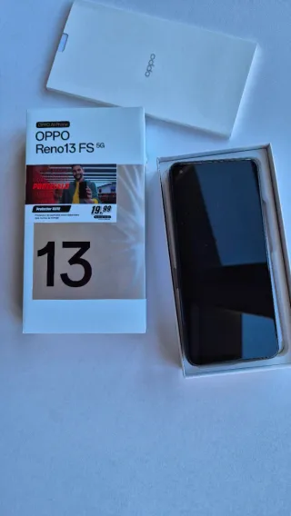 Teléfono móvil Oppo Reno13 FS en color negro. Incluye protector de pantalla. - Modelo: Reno13 FS - Color: Negro - 8GB Ram + 4gb - Bateria 5000 mAh