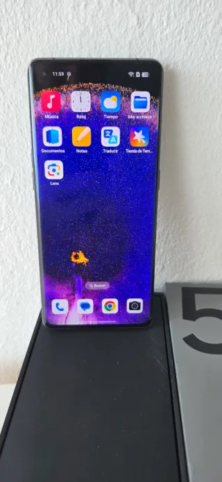 Teléfono móvil OPPO FIND X5 5G con acabado negro y detalles multicolor. Cuenta con una gran capacidad de almacenamiento. - 256 GB de almacenamiento interno.