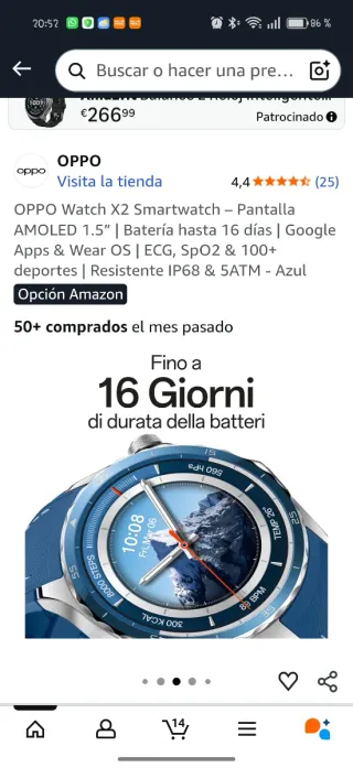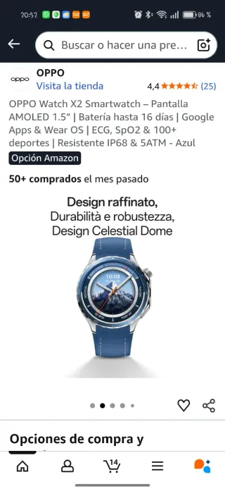 Reloj inteligente Oppo Watch X2 en color azul. - Pantalla AMOLED de 1.5 - Batería de hasta 16 días - Compatible con Google Apps & Wear OS - Funciones: ECG, SpO2, 100+ deportes - Resistente IP68 & 5ATM