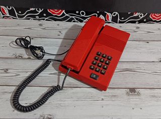 Antiguo teléfono Alcatel Teide modelo D + R del año 1987 (El último que se fabricó y el más completo) color rojo en buen estado general para sus años con alguna marca de uso y del tiempo visible. El teléfono se ha probado y funciona la hora de hablar y de escuchar al recibir llamadas, lo que requiere de conexión antigua o de router con tecnología decádica por pulsos para poder realizarlas marcando el número. Se vende lo que se ve y tal cual se ve, por tanto mirad las fotos. Se puede enviar por Wallapop Envíos, Correos o InPost desde 5,30€.