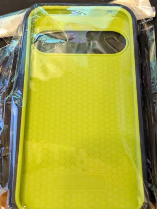 Funda protectora para Pixel 9 Pro XL con diseño antigolpes. - Color verde lima. - Textura interior de panal. - Borde exterior oscuro. Solo en mano no envío