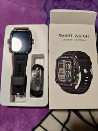 Reloj inteligente con un diseño elegante y moderno.no se si funciona porque no tengo el cargador - Correa con textura. - Pantalla rectangular.
