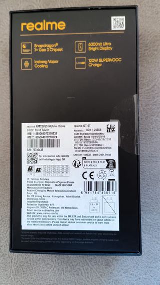 Teléfono móvil Realme GT 6T con 256GB de almacenamiento. El paquete está sin abrir. - Modelo: GT 6T - Gigas: 256GB y 8Gb RAM - Color Fluid Silver SOLO ENTREGA EN ALCALÁ DE HENARES📍en mi portal o en la Renfe. ✨BENDICIONES✨