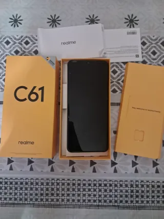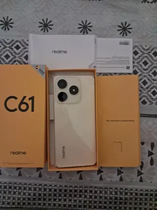 Teléfono móvil Realme C61 en color blanco. Cuenta con una gran capacidad de almacenamiento y memoria RAM. - 256 GB de almacenamiento interno. - 6 GB de memoria RAM. - Capacidad de almacenamiento ampliable. Esta roto el protecor