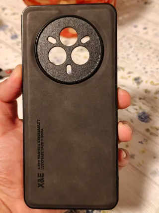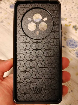 Funda para móvil Realme 14 Pro negra con acabado en imitación piel. Completamente nuevo, sin usar. - Diseño elegante en color negro. - Protección anticaida