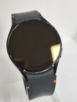 Reloj inteligente Samsung Galaxy Watch FE de 40mm en color negro. Un accesorio moderno y funcional. - Diseño elegante y ligero. - Correa cómoda para uso diario. - Bisel con detalles en naranja y azul.