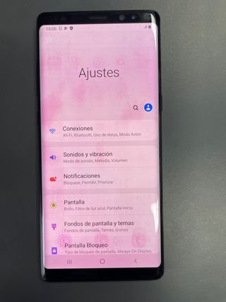 Teléfono Samsung Galaxy Note 8, con la pantalla bastante marcada por pixelburn aunque solo es molesto realmente en fondos blancos, por el resto en muy buen estado