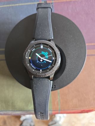 Reloj inteligente Samsung Gear S3 Frontier en color negro. Un accesorio versátil para tu día a día. Con base de carga y cargador inclidos - Diseño elegante y moderno. - Pantalla circular. - Correa cómoda.Precio no negociable