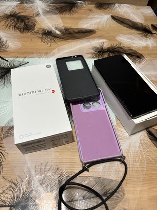Teléfono móvil Xiaomi 14T Pro con muy poco uso. Incluye dos fundas protectoras. - Funda negra con tapa. - Funda morada con cordón. - Capacidad de 512GB.