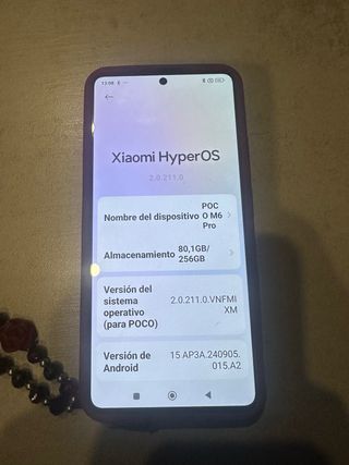 Teléfono móvil Xiaomi Poco M6 Pro con 256GB de almacenamiento. - Modelo: Poco M6 Pro - Capacidad: 256GB - Sistema operativo: Xiaomi HyperOS 2.0.211.0 - Versión de Android: 15 AP3A.240905.015.A2