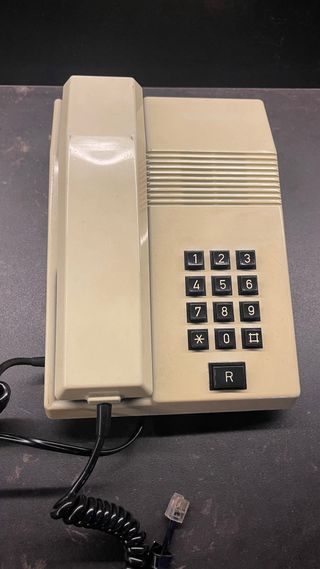 Teléfono fijo Amper modelo SB-11 en color beige. Un diseño clásico para tu hogar u oficina. - Teclado numérico completo. - Botones de función RT, PAUSA, R, RLL. - Diseño retro.