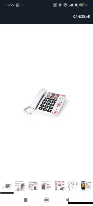 Teléfono fijo diseñado para personas mayores con teclas grandes y de fácil uso. Incluye botón SOS para emergencias. - Botones de marcación rápida con fotos. - Base de carga. - Diseño ergonómico.