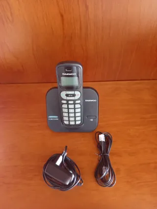 Teléfono inalámbrico Daewoo en color negro. Incluye base, cargador y cable de conexión. - Diseño moderno y funcional. - Fácil de usar.