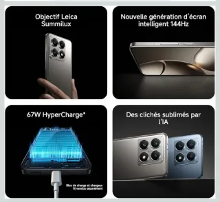 Teléfono móvil Xiaomi 14T con gran capacidad de almacenamiento y lentes Leica. - Pantalla inteligente de 144Hz. - Carga HyperCharge de 67W. - Capturas mejoradas por IA. Dos mínimos golpes en pantalla.