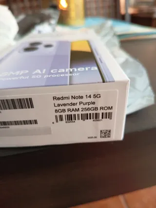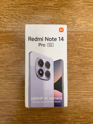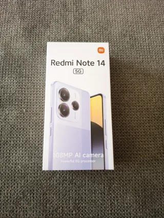 Teléfono móvil Xiaomi Redmi Note 14 5G con 128GB de almacenamiento y 6GB de RAM. - Nuevo, sin abrir. - Precio original: 279,99€. - Cámara principal de 108MP con IA. - Potente procesador 5G. - Color violeta.