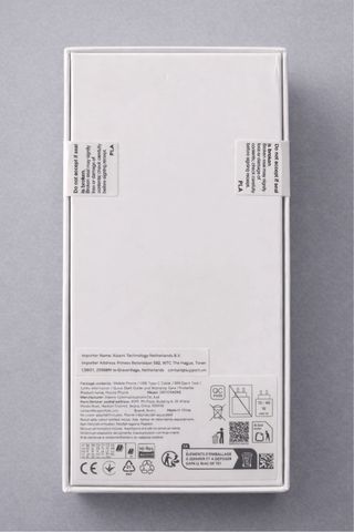 Caja vacía para el Xiaomi 14T Pro, con colaboración Leica. - Diseño elegante en color blanco. - Incluye logo de Xiaomi y Leica. - Texto CO-ENGINEERED WITH LEICA y Powered by Xiaomi HyperOS.
