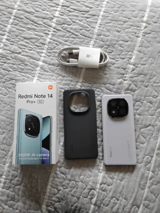 Teléfono móvil Xiaomi Redmi Note 14 Pro+ 5G. - 12GB RAM 512GB ROM. - Cámara IA de 200MP. - Procesador Snapdragon® 7s Gen 3. Tiene 1 año de uso, está impoluto, se adjunta factura. Se vende con las carcasas que salen en la foto.