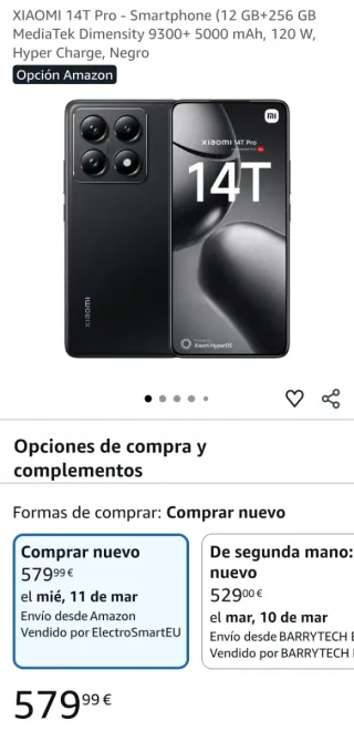 Teléfono móvil Xiaomi 14 T Pro con excelentes características. - Cámara principal de 50 MP - Cámara ultra gran angular de 12 MP - Cámara con teleobjetivo de 50 MP y OIS - Cámara frontal de 32 MP - Carga rápida de 120 W - Carga inalámbrica de 50 W - Batería de 5000 mAh - Pantalla AMOLED de 2712 x 1220 - Brillo máximo de 4000 nits - Tasa de refresco de 144 Hz - Procesador MediaTek Dimensity 9300+ - Resistencia IP68 al agua y al polvo