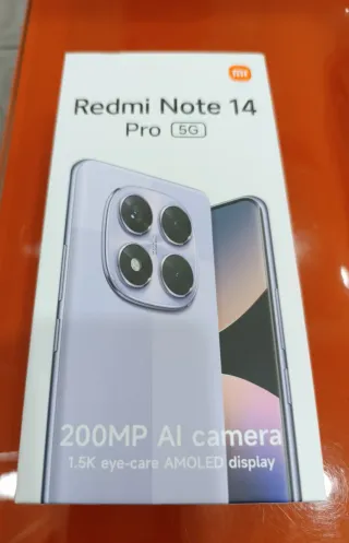 Nuevo, en la caja original con todos los accesorios Teléfono móvil Xiaomi Redmi Note 14 Pro 5G con 12GB de RAM y 512GB de almacenamiento. - Cámara principal de 200MP con IA. - Pantalla AMOLED de 1.5K con cuidado ocular.