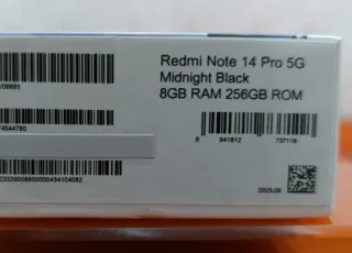 Caja original para el Xiaomi Redmi Note 14 Pro 5G. Ideal para coleccionistas o para completar un set. - Diseño frontal con imagen del teléfono. - Información del modelo y características principales.