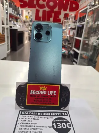 Teléfono móvil Xiaomi Redmi Note 14 con pantalla OLED de 6,67 pulgadas. - Memoria interna de 128GB. - 8GB de RAM. - Cámara principal de 50MP. - Procesador MediaTek 7025. - Sistema operativo Android 14 HyperOS.