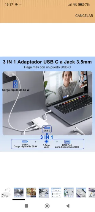 Adaptador USB C a Jack 3.5mm y Carga