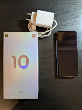 Teléfono móvil Xiaomi Mi 10 con acabado en gris. - Capacidad de almacenamiento de 128 GB. - Incluye cargador y cable. - Caja original y varios protectores.