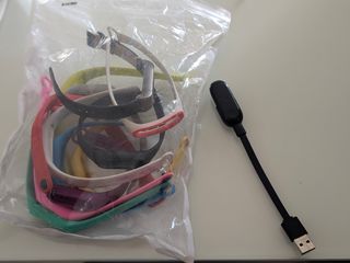 Pulsera de actividad Xiaomi Mi Smart Band 4 con múltiples correas para personalizar tu estilo. Incluye el cargador. - 16 correas de diferentes colores y una de acero. - Cargador USB.