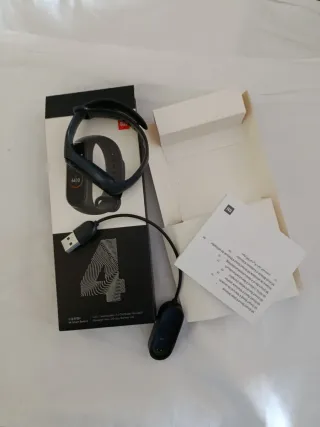 Pulsera de actividad Xiaomi Mi Smart Band 4 en color negro en su caja original con cargador incluido y pulsera de recambio. En perfecto estado. - Pantalla a color. - Monitor de ritmo cardíaco. - Seguimiento de actividad física. - Resistencia al agua - Batería de larga duración