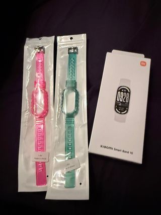 Mi band plateada. Incluye doscorreas de repuesto para Xiaomi Mi Band 10, una en color rosa y otra en color verde. - Material de silicona. - Cierre ajustable. Se vende por no darle uso. Solo abierta para ver y hoy para hacerle fotos. El precio incluye las dos correas. Todo sin uso. A estrenar