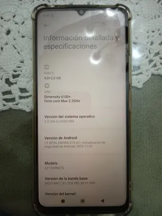 Teléfono móvil Xiaomi Redmi 13C 5G con 128GB de almacenamiento. - Modelo: Redmi 13C 5G - 4 GB Ram + 2 (6 total) - Octacore 2.2 Ghz - Capacidad: 128GB - Versión de Android: 15 AP3A.240905.015.A2 - Actualización de seguridad: 2025-11-01 - En perfecto estado, con un año de uso, se entrega restablecido de fábrica , con funda , cable usb-c y un cristal templado de repuesto