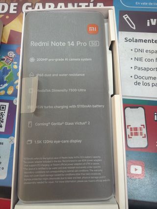 Xiaomi Redmi Note 14 Pro 5G en color negro y con 256GB de almacenamiento en perfecto estado. Todos nuestros artículos de segunda mano han sido testeados debidamente para comprobar su correcto funcionamiento. Damos 1 año de garantía en artículos usados y 3 años en artículos nuevos. Quieres verlos? Pásate por alguna de nuestras tiendas en Málaga: Av. de la Aurora, 19 Calle Armengual de la Mota, 10 Teléfono (Whatsapp): 627 119 234 Compramos también teléfonos, incluso con avería. Nuestras valoraciones nos avalan. - Pantalla Amoled de 6,67 con 120Hz. - Batería de 5110 mAh con carga rápida de 45W. - Cámara principal de 200MP.