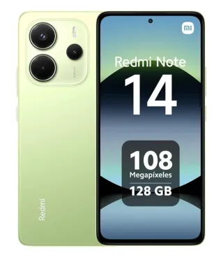 Teléfono móvil Xiaomi Redmi Note 14 en color verde y con 128 GB + 6 de almacenamiento. ¡Estrenalo tú mismo! - Pantalla de alta resolución. - Cámara principal de 108 MP. - Diseño moderno y ligero.
