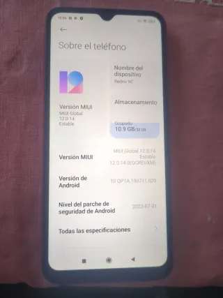 Teléfono móvil Xiaomi Redmi 9C con 32GB de almacenamiento. - Modelo: Redmi 9C - Capacidad: 32 GB - Versión MIUI: Global 12.0.14 Estable - Versión de Android: 10 QP1A.190711.020 - Nivel del parche de seguridad de Android: 2022-07-01