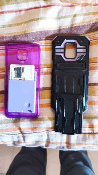 Funda protectora para Xiaomi Redmi Note 9 Pro de color morado translúcido. Incluye un compartimento para tarjetas. - Material: TPU flexible. - Diseño con ranura para tarjetas. - Protección contra golpes y arañazos. 20€ las dos.
