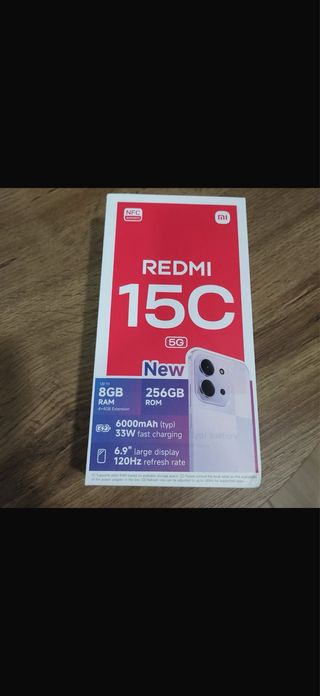 Teléfono móvil Xiaomi Redmi 15C, completamente nuevo y precintado. - Pantalla grande de 6.9 con 120Hz de tasa de refresco. - Batería de 6000mAh (typ) con carga rápida de 33W. - 8GB de RAM (ampliable 4+4GB). - 128GB de almacenamiento ROM. - Compatible con NFC. Entregó en mano
