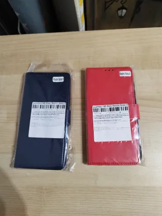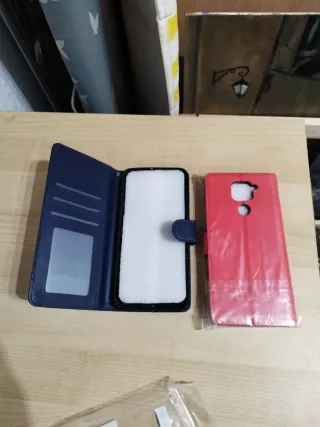 Se venden dos fundas para móvil Redmi Note 9, una de color azul y otra roja. Ambas están sin abrir. - Funda azul. - Funda roja.