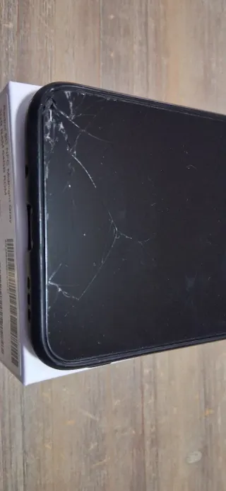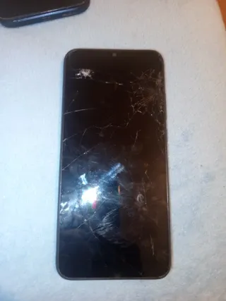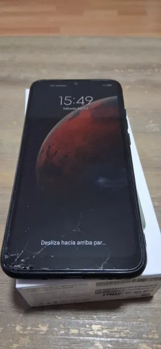 Xiaomi Redmi 9C NFC en color negro. La pantalla tiene algunas grietas por un caída pero no afecta a su funcionamiento.