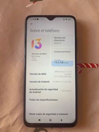 Teléfono móvil Xiaomi Redmi 9T en buen estado. - Tiene 64 GB de almacenamiento. - MIUI Global 13.0.1 Estable. - Versión de Android 12. - Actualización de seguridad de Android 01-02-2023.